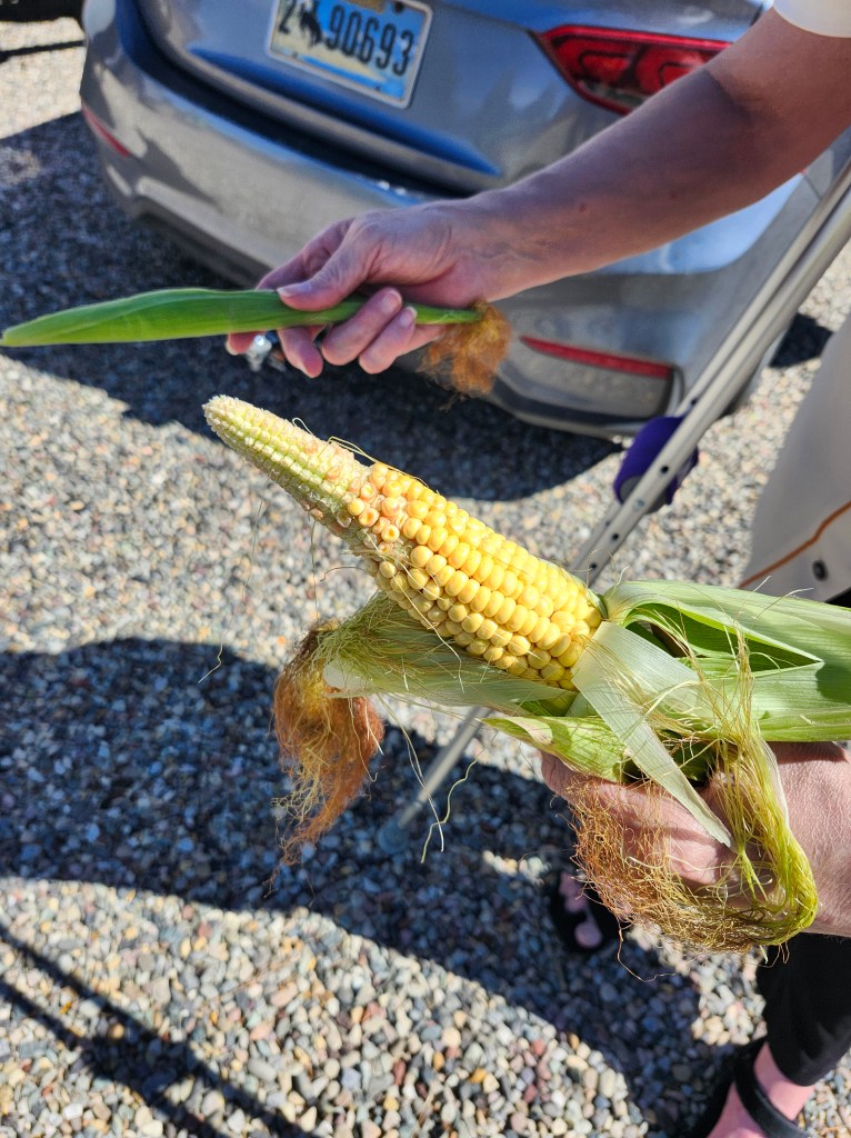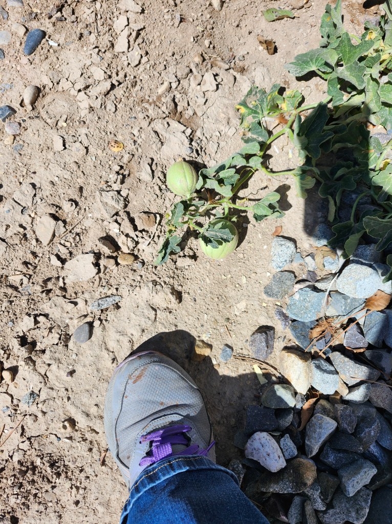 Some rogue corn and watermelon. The corn grew from meal for the chickens that sprouted. The watermelon was way out of the garden areas and didn’t even know it was growing anything.