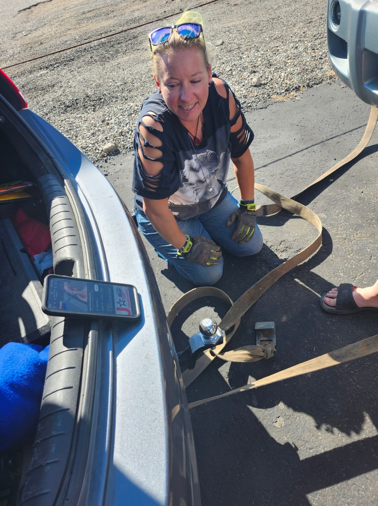 One of my sisters’ car had been broken down for awhile. The mechanic shop was going to start charging her to keep it there unless she could get it fixed. Instead we decided to get it towed back to her house while she figures out what she’s going to do. Definitely got some new scratches on my bumper, but we made it!