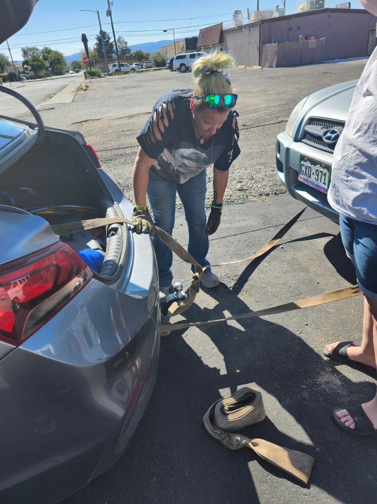 When I got to Grand Junction, my mom and sisters were down a vehicle, as my mom’s car was in the shop. An obnoxious deer decided to jump in front of one of my sisters when she was driving back from Cheyenne with Morgana! So I told them I would help drive people around in between me working and trying to get my camper together.