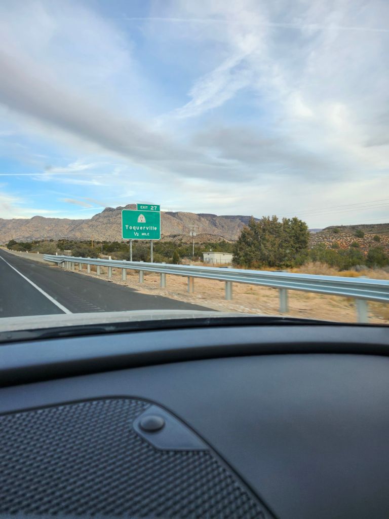 One of the problems I was having at this point was that when on the road, my battery held enough power for us to get through the night, but only one night. Then it needed to be recharged during the day. The solar panel was shot (sold to me that way) and the RV dealership was still waiting on the new one to arrive under warranty. So, I could charge the RV battery off the car, when we were driving. It wasn’t long after stopping at the gas station that I could no longer run the furnace. And the snow didn’t seem to be letting up as the sun was rising. So, I went into the gas station to talk to the clerk and get some breakfast to help me decide what to do. I found out that it was a really good thing I pulled of the road. Apparently, just about a mile or so down the road, right after I pulled off the highway, there was an accident. A really, really bad accident. The clerk helped me find Utah’s DOT website for road and weather conditions and reiterated how lucky I was.
